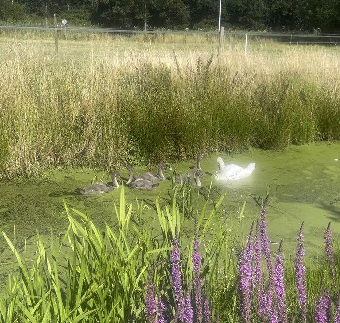 Werken in het dierenvoedselbos is vooral ook heel veel nieuwe planten, bloemen en dieren zien. Van de zwanen en hun jongen, de eendjes met hun pulletjes tot de eikehaantjes die zo goed zijn voor de egels, parende libellen, heel veel kikkers, padden, salamandertjes. Ook in de graafbijenburcht zijn duidelijk insectenholletjes gemaakt, maar ik heb de bijbehorende bewoners nog niet gezien. Egels in overvloed. Zeker nu er 3 egelhuisjes in het bos staan, voorzien van hooi en stro. Alvast voor de winter maakte Ingrid salamanderpaleisjes van… Lees meer